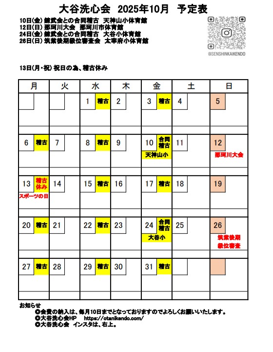 - 24日(金) 錬武会との合同稽古 大谷小体育館